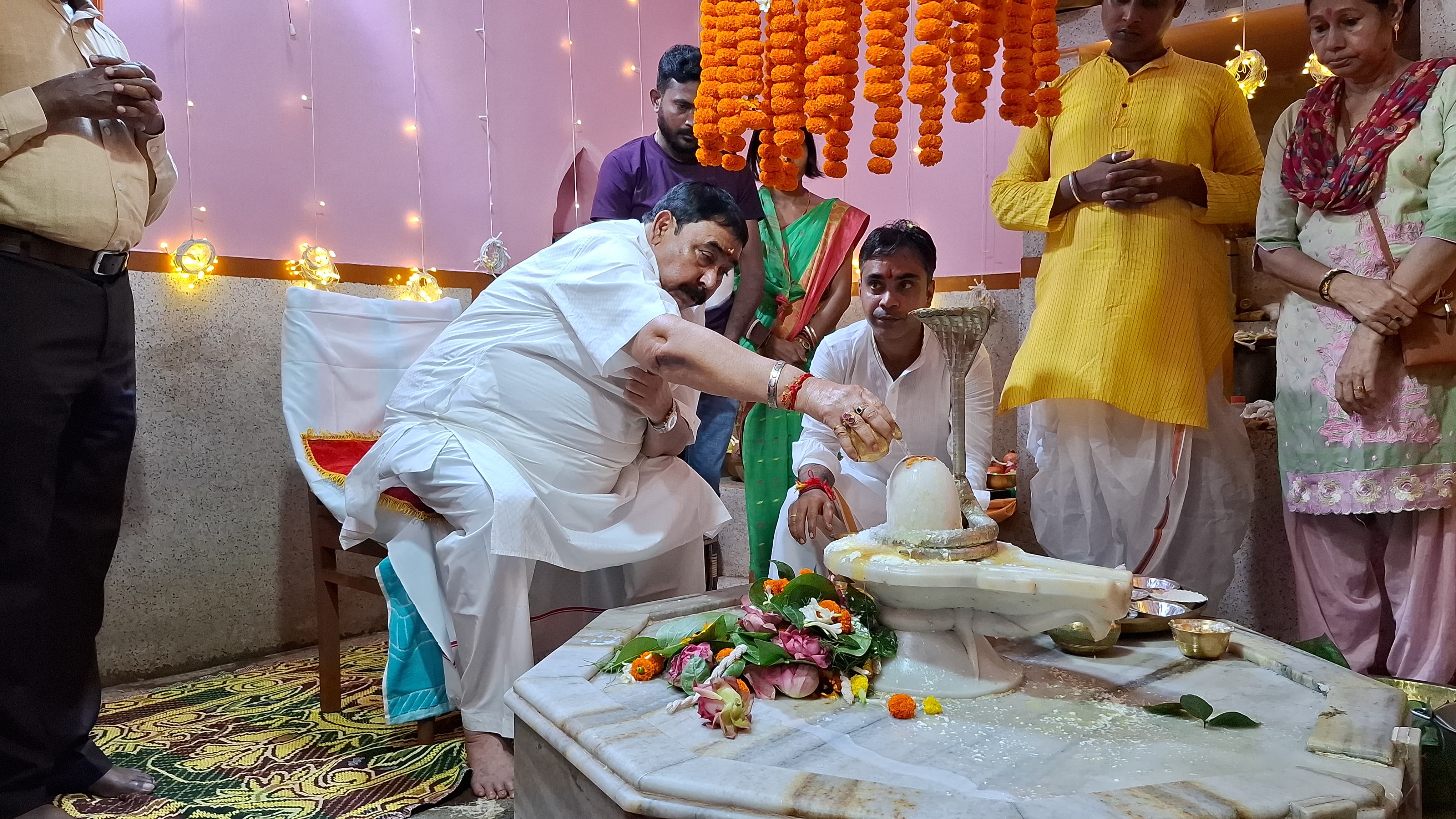 পুজো শেষ না করে জলস্পর্শ নয়, শ্রাবণের শেষ সোমবারে ভক্তিভরে পুজো কেষ্টর। শিবের উপোস করে জল ঢাললেন বাবার মাথায়।