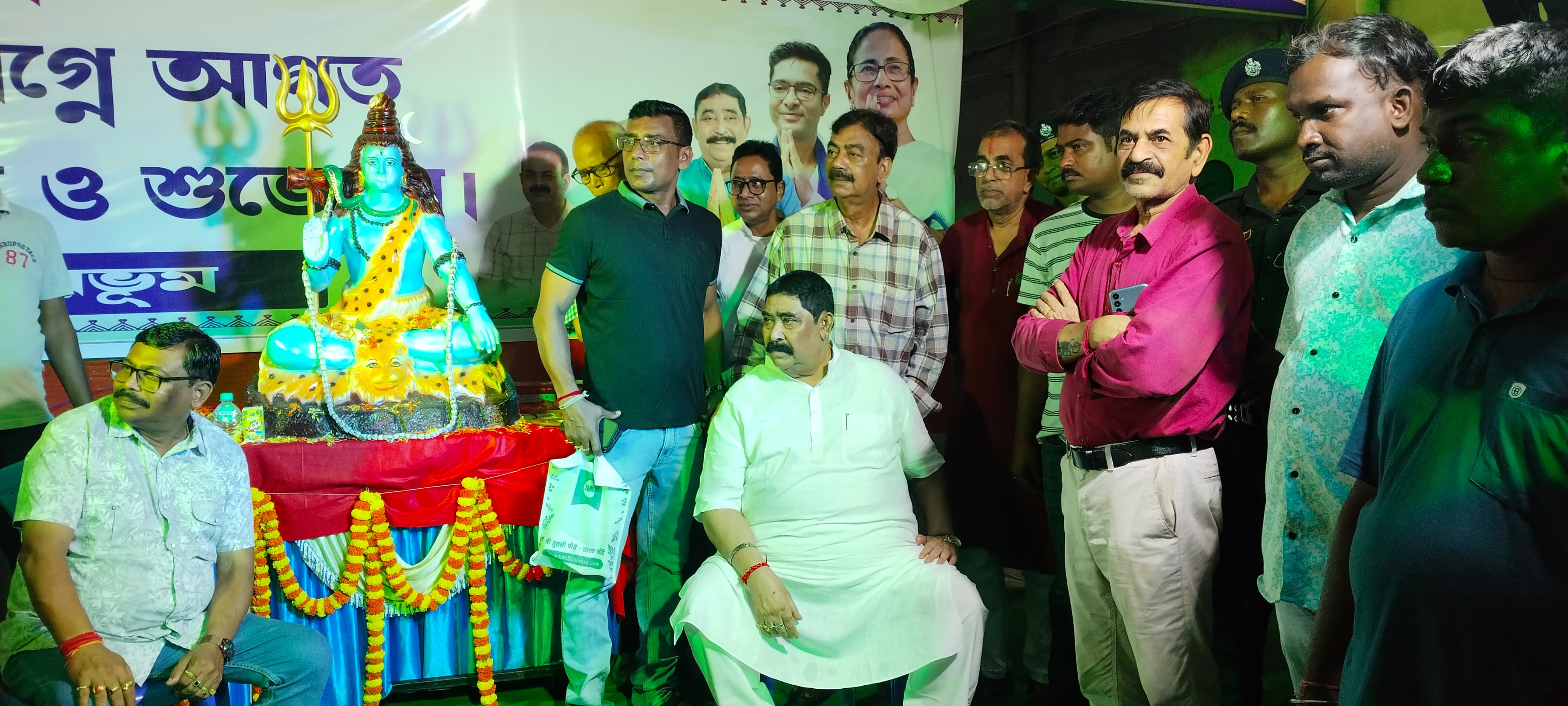বোলপুরে তৃণমূল কার্যালয়ে কার্যত উৎসবের মেজাজ দেখা গিয়েছে। সেখানে বাঁধা হয় সুন্দর ভাবে প্যান্ডেল। বসানো হয় শিবের মূর্তি। বিভিন্ন আলোকসজ্জায় সাজিয়ে তোলা হয়েছে প্যান্ডেল থেকে শুরু করে পার্টি অফিস। অনুব্রত মণ্ডলের অনুগামীদের কাছ থেকে জানা যায় অনুব্রত মণ্ডল পুজো-অর্চনায় বিশ্বাসী। সকালে ঠাকুরকে পুজো না দিয়ে তিনি জলস্পর্শও করেন না। আর সেই কারণেই এই উদ্যোগ।