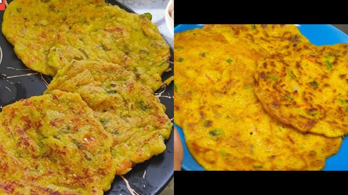 चौथा स्टेप: अब, गैस ऑन कर उसपर एक नॉन-स्टिक तवा गरम करें और उस पर थोड़ा सा तेल या घी लगाएं। चम्मच से घोल लेकर तवे पर डालें और गोल आकार में फैलाएं, जैसा कि आप डोसा या उत्तपम बनाते हैं।