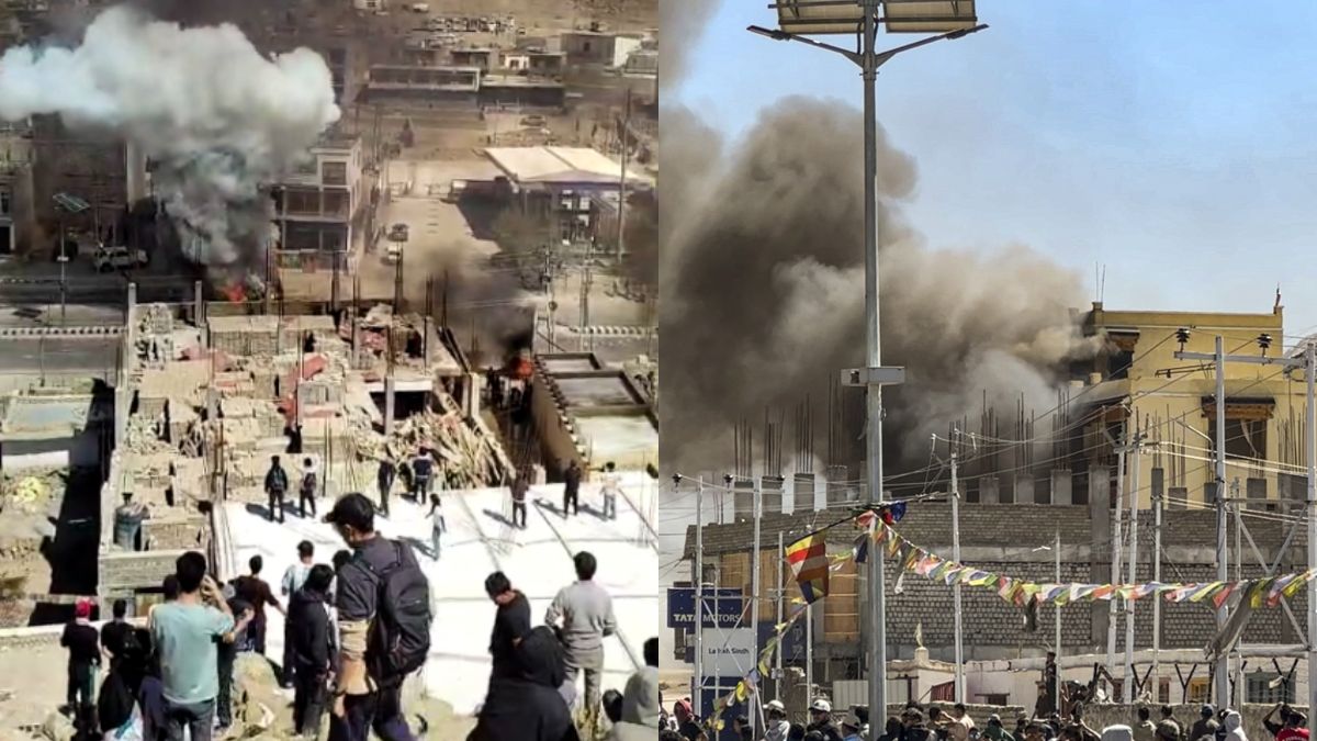लेह में हिंसक प्रदर्शन की तस्वीर