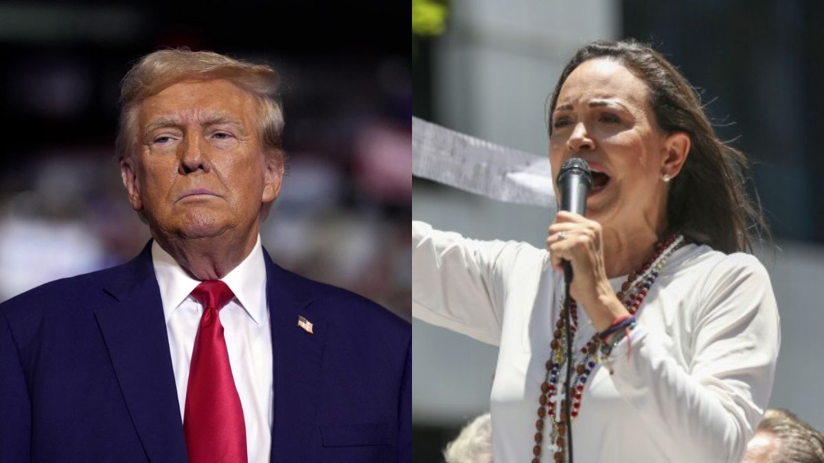 अमेरिका के राष्ट्रपति डोनाल्ड ट्रंप और वेनेजुएला की प्रमुख विपक्षी नेता मारियो कोरिना मचादो।