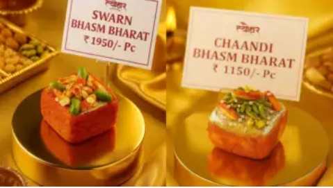 জয়পুরের মিষ্টির দুনিয়া বরাবরই ঐতিহ্যে ভরপুর, কিন্তু এবার সেই ঐতিহ্যে যোগ হয়েছে আধুনিকতার ঝলক। স্বর্ণ ভস্ম এমন একটি মিষ্টি যা তৈরি করা হয়েছে ঐতিহ্য ও স্বাস্থ্য একসাথে মিশে আয়ুর্বেদের প্রাচীন জ্ঞানের সঙ্গে। খুব কম মিষ্টিই আছে যা সোনার আবরণে মোড়া এবং আয়ুর্বেদের ছোঁয়ায় তৈরি। এক একটির দাম ৩০০০/- টাকা। এটি ১, ৪ এবং ৬টি করে বাক্সে বিক্রি হয়, আর প্রত্যেকটি বাক্স দেখতে যেন একেকটি ক্ষুদ্র গয়নার বাক্স। জয়পুরের ঝলমলে বাজারে যখন আলোয় ঝলমল করছে মোতিচূরের লাড্ডু আর মালাই পেড়া, তখন তাদের মাঝেই এই সোনালি রত্নের মতো মিষ্টি যেন লুকিয়ে থাকা এক ধনরত্ন।