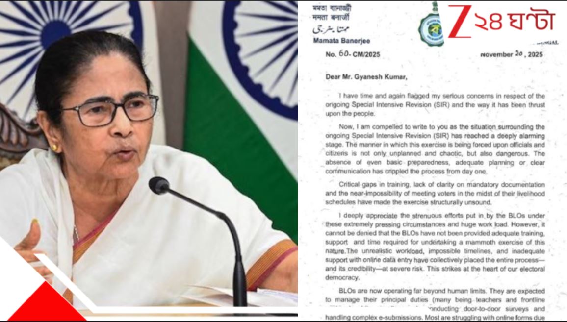 জি ২৪ ডিজিটাল ব্যুরো: ‘বিপজ্জনক সীমা পৌঁছে গিয়েছে’। রাজ্যে অবিলম্বে SIR বন্ধের দাবি জানিয়ে এবার মুখ্য নির্বাচন কমিশনারকে চিঠি লিখলেন মুখ্যমন্ত্রী মমতা বন্দ্যোপাধ্যায়। চিঠিতে উল্লেখ, ‘যেভাবে SIR করা হচ্ছে, তাতে পরিকল্পনার অভাব রয়েছে। বিশৃঙ্খল পরিস্থিতি তৈরি করছে, একইসঙ্গে বিপজ্জনকও’।