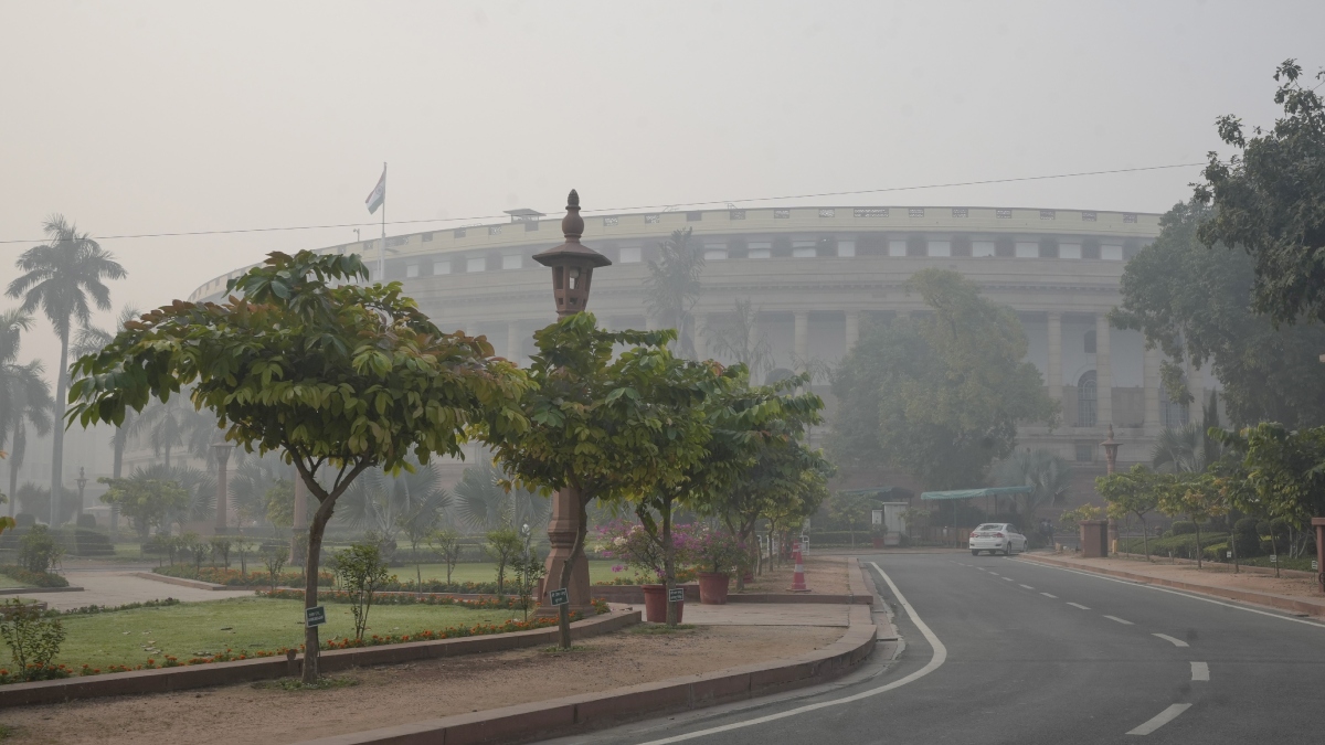 दिल्ली में संविधान सदन के बाहर का नजारा