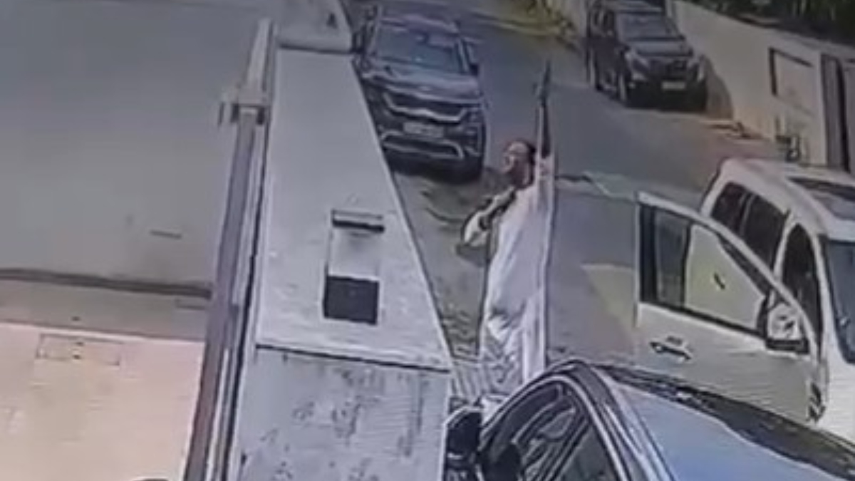 घर के बाहर फायरिंग करता शख्स