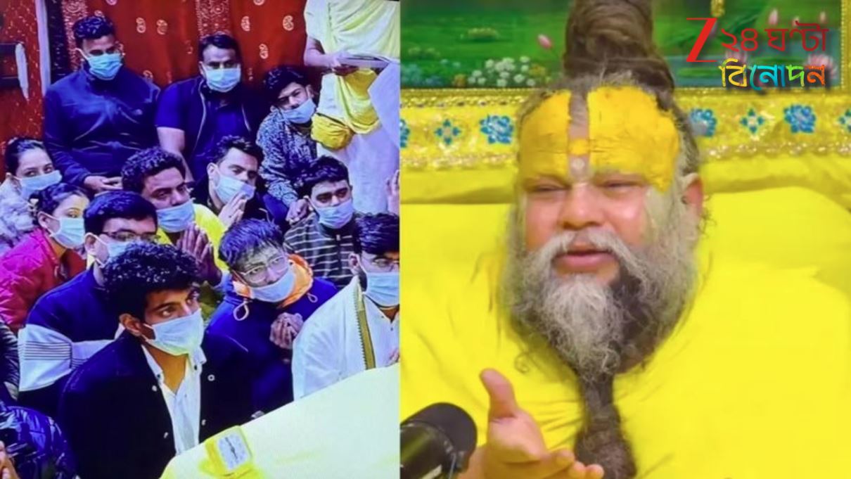 ভাইরাল ছবিতে পলাশকে অন্যান্য ভক্তদের সঙ্গে মেঝেতে বসে মাস্ক পরে প্রেমানন্দ মহারাজের বাণী শুনতে দেখা যায়।