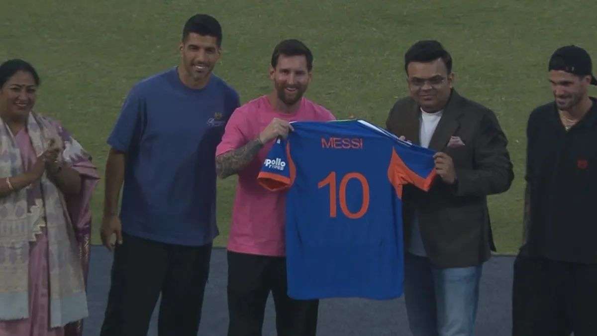 वहीं, मेसी को एक खास ऑटोग्राफ किया हुआ क्रिकेट बैट गिफ्ट में दिया, जिसने इस पल को और भी खास बना दिया। इस मौके पर जय शाह ने मेसी को आगामी टी20 वर्ल्ड कप के लिए आमंत्रित भी किया और उन्हें इस ICC टूर्नामेंट का टिकट मेसी को दिया। इस दौरान उन्होंने मेसी को आगामी टी20 वर्ल्ड कप की जर्सी गिफ्ट में दी, जिसपर मेसी लिखा हुआ था। वहीं उन्होंने मेसी के साथ मौजूद फुटबॉलर सुआरेज को 7 नंबर और डी पॉल को 9 नंबर की जर्सी दी।