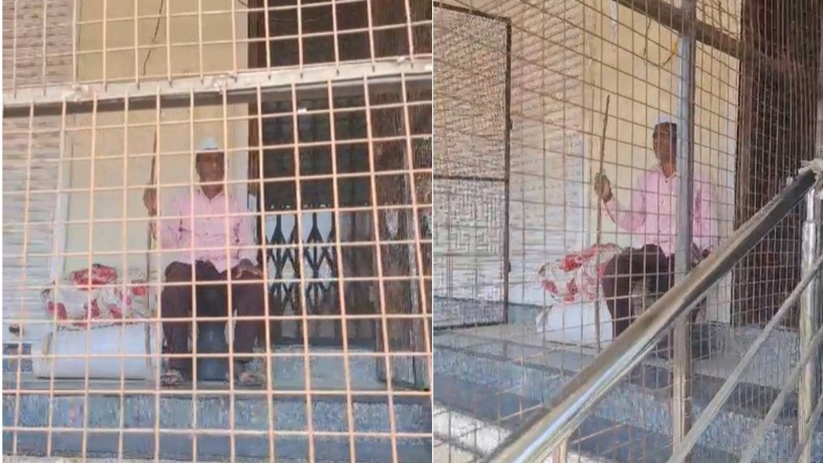 पिंजरे में बंद बैंक का गार्ड।
