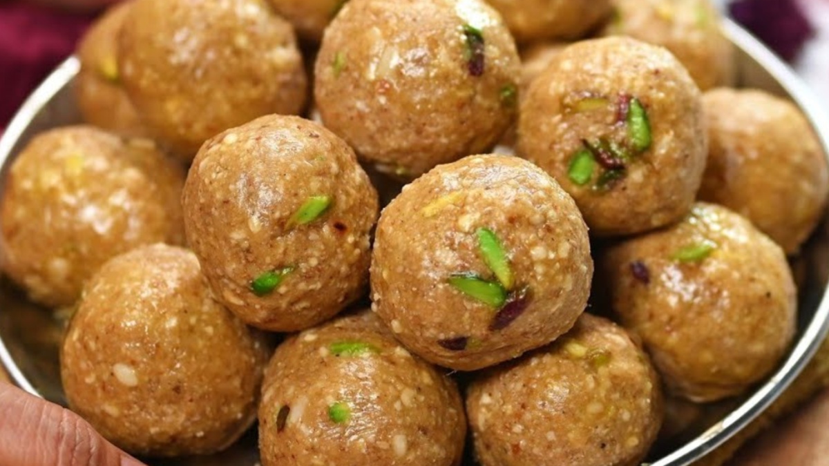 तिल के बीज 1 कप, मूंगफली 1 कप, अखरोट आधा कप, बादाम आधा कप, काजू आधा कप, सूखा नारियल आधा कप, देसी घी आधा कप, गेहूं का आटा – 1 कप, गुड़ – 1 कप, इलायची पाउडर – 1 चम्मच, पिस्ते