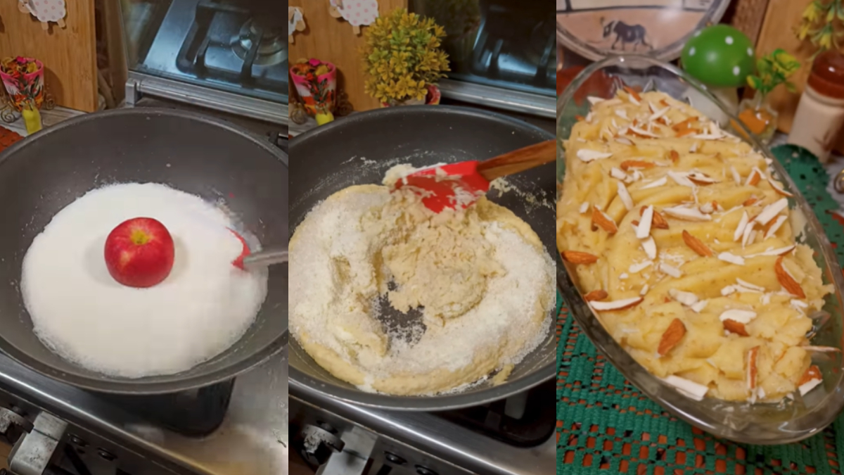 चौथा स्टेप- अब हलवा को चीनी के मिक्स होने तक पकाएं। ऊपर से खुशबू के लिए पिसी हुई हरी इलायची का पाउडर डाल दें। इसके ऊपर से बारीक कटे हुए 2-3 बादाम और डाल दें। तैयार है स्वादिष्ट सेब और बादाम का हलवा। आप इसे सर्दियों में रोज बनाकर खाएं। कमजोर शरीर में ताकत लाने के लिए ये हलवा बेस्ट है। आप बच्चों को भी ये हलवा जरूर खिलाएं।