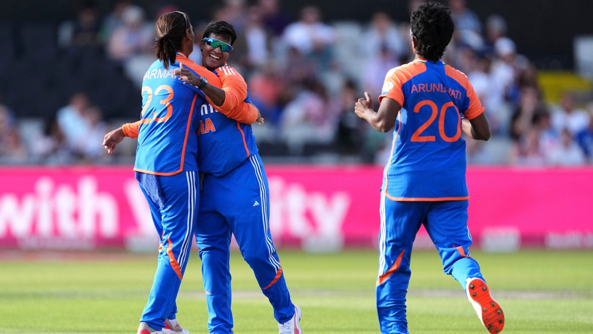 IND-W vs SL-W: ODI वर्ल्ड कप विजेता भारतीय महिला क्रिकेट टीम इन दिनों श्रीलंका के खिलाफ T20I सीरीज खेल रही है। 5 मैचों की इस T20I सीरीज का 21 दिसंबर को विशाखापत्तनम में आगाज हुआ था, जहां टीम इंडिया ने श्रीलंका को 8 विकेट से करारी शिकस्त दी थी। भारत की जीत में स्टार बल्लेबाज जेमिमा रोड्रिगेज का अहम योगदान रहा, जिन्होंने 44 गेंदों पर 10 चौकों की मदद से नाबाद 69 रनों की पारी खेली थी। इस शानदार पारी के लिए उन्हें प्लेयर ऑफ द मैच चुना गया। गेंदबाजी में क्रांति गौड़, श्री चरणी और अनुभवी गेंदबाज दीप्ति शर्मा ने अहम योगदान दिया और एक-एक विकेट अपने नाम किया।