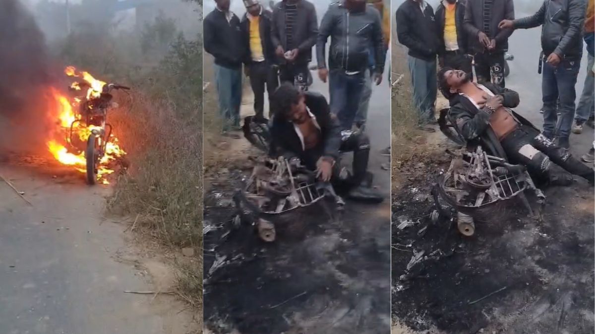 शख्स ने खुद की बाइक में लगाई आग
