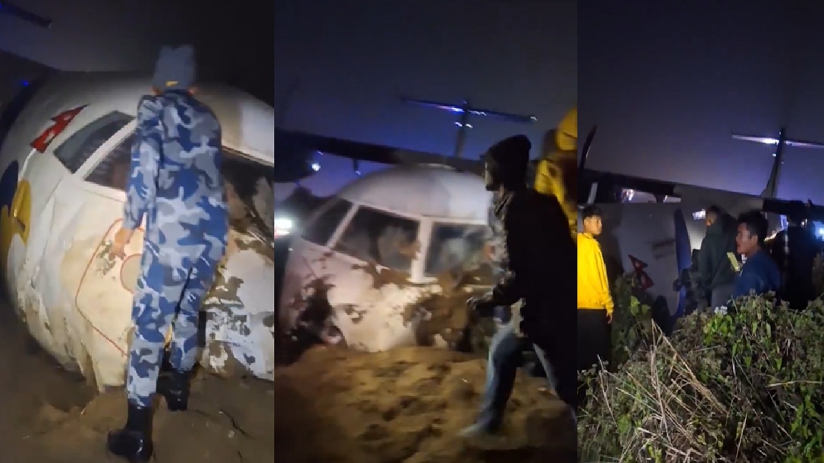 Nepal Plane Skids Off Runway: नेपाल में नए साल की शुरुआत में ही बड़ा विमान हादसा हुआ है। गनीमत रही कि इस हादसे में किसी यात्री या क्रू मेंबर की जान नहीं गई है। यहां शुक्रवार शाम को भद्रपुर एयरपोर्ट पर लैंडिंग के दौरान बुद्धा एयर का एक विमान रनवे से फिसल गया। एयरलाइन ने एक बयान में बताया कि फ्लाइट 901 में सवार सभी 51 यात्री और चार क्रू मेंबर सुरक्षित हैं।