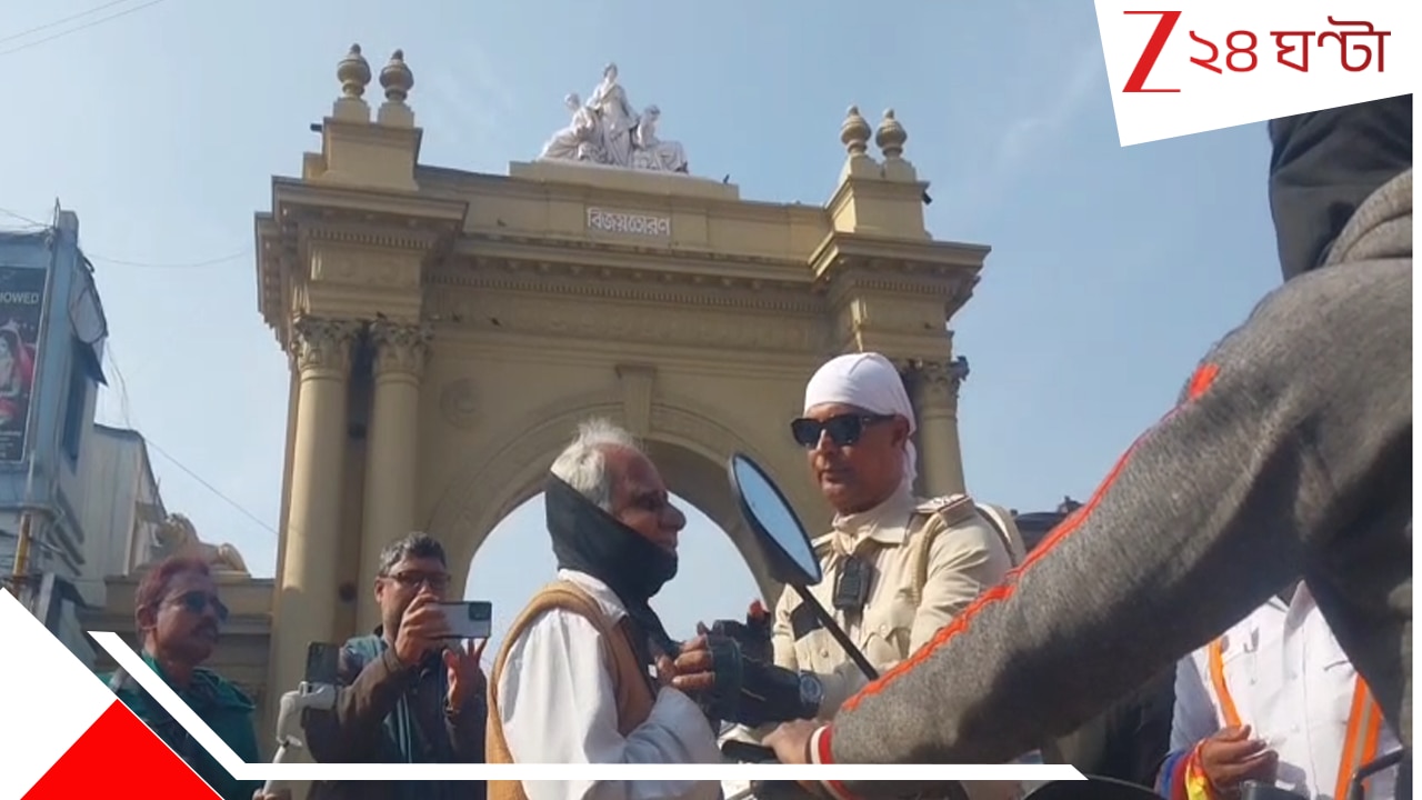 এই টুপি কিন্তু কিনতে হবে না। একেবারে বিনি পয়সায় গোটা শহরের ব্যস্ত রাস্তায় চিন্ময়বাবু এবং তার সহকর্মীরা দিনভর এই টুপি পরিয়ে দিলেন।