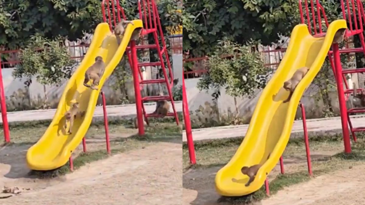 आपने देखा होगा कि अलग-अलग पार्क में बच्चों के खेलने के लिए कई सारे झूले लगे होते हैं। पहले तो पार्क में इन झूलों पर झूलने के लिए बच्चों की लाइन लगी रहती थी मगर अब अधिकतर बच्चे फोन में बिजी हो गए हैं और पार्क में बहुत ही कम बच्चे दिखते हैं। ऐसा ही कुछ इस वीडियो में दिखा। पार्क में लगे झूले में इंसान के बच्चे तो नहीं मगर बंदर के बच्चे झूल रहे हैं और वो जिंदगी का असली मजा ले रहे हैं। यह वाला वीडियो सोशल मीडिया पर खूब वायरल हो रहा है।