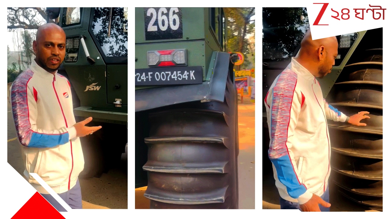 জি ২৪ ঘণ্টা ডিজিটাল থেকে দীপঙ্করকে ফোন করতেই বোঝা গেল যে, তাঁর অবাক হওয়ার রেশ কাটেনি। তিনি বললেন, ‘এই গাড়ি রাস্তা দিয়ে চললে, আর অন্য কোনও গাড়ির দিকে কেউ তো তাকাবেই না। বাপরে কী বিরাট চাকার সাইজ! আমি তো দেখে অবাক হয়ে গিয়েছি।’ ২৬ জানুয়ারি কলকাতায় সাধারণতন্ত্র দিবসের প্যারেডে অংশগ্রহণ করবে ভারতীয় সেনা। সেই উপলক্ষে সেনার বেশ কিছু যানই ময়দানের ইতিউতি দেখা যাচ্ছে। দীপঙ্কর এদিন লেসলি ক্লডিয়াস সরণীতে ভারতীয় সেনার একাধিক অ্যাটর এন ১২০০ মডেলের উচ্চ-গতির উভচর যানেরই দেখা পেয়েছেন। তারই একটি ভিডিয়ো শেয়ার করেছেন তিনি।