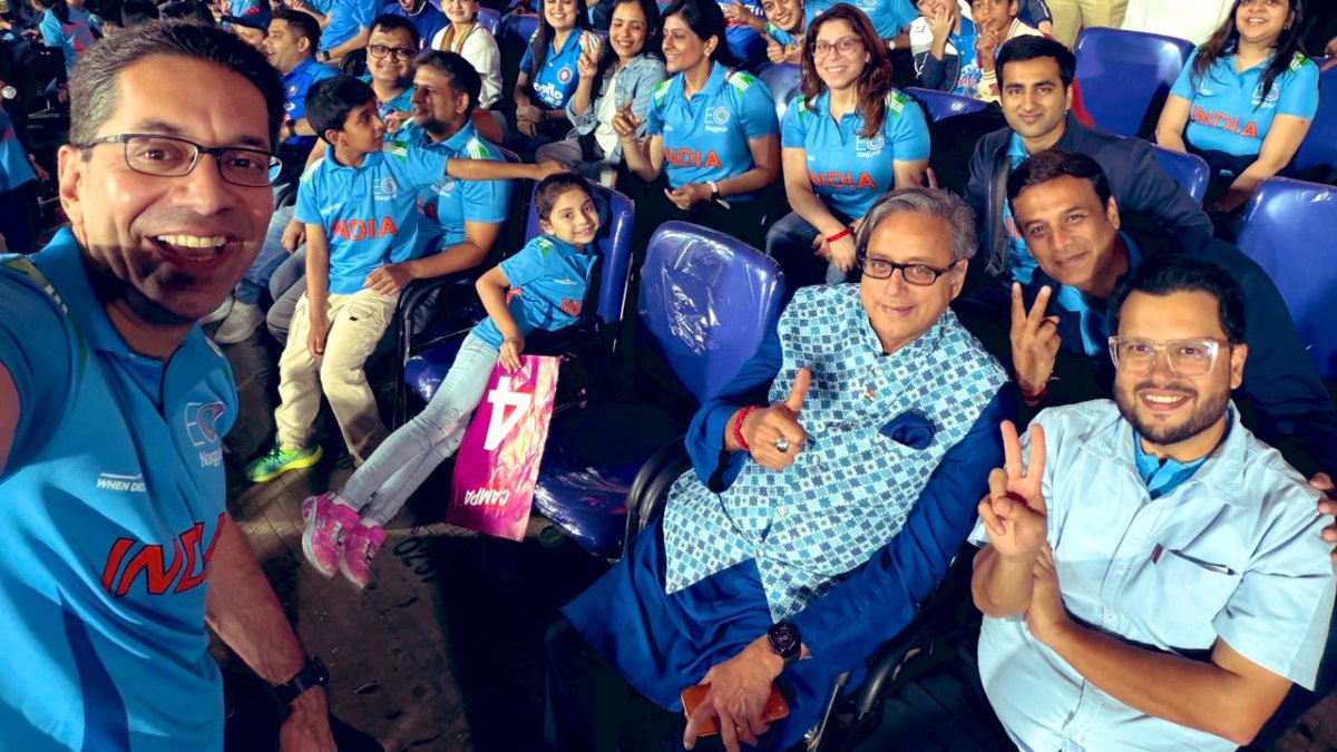 भारत-न्यूजीलैंड का मैच देखने पहुंचे शशि थरूर।