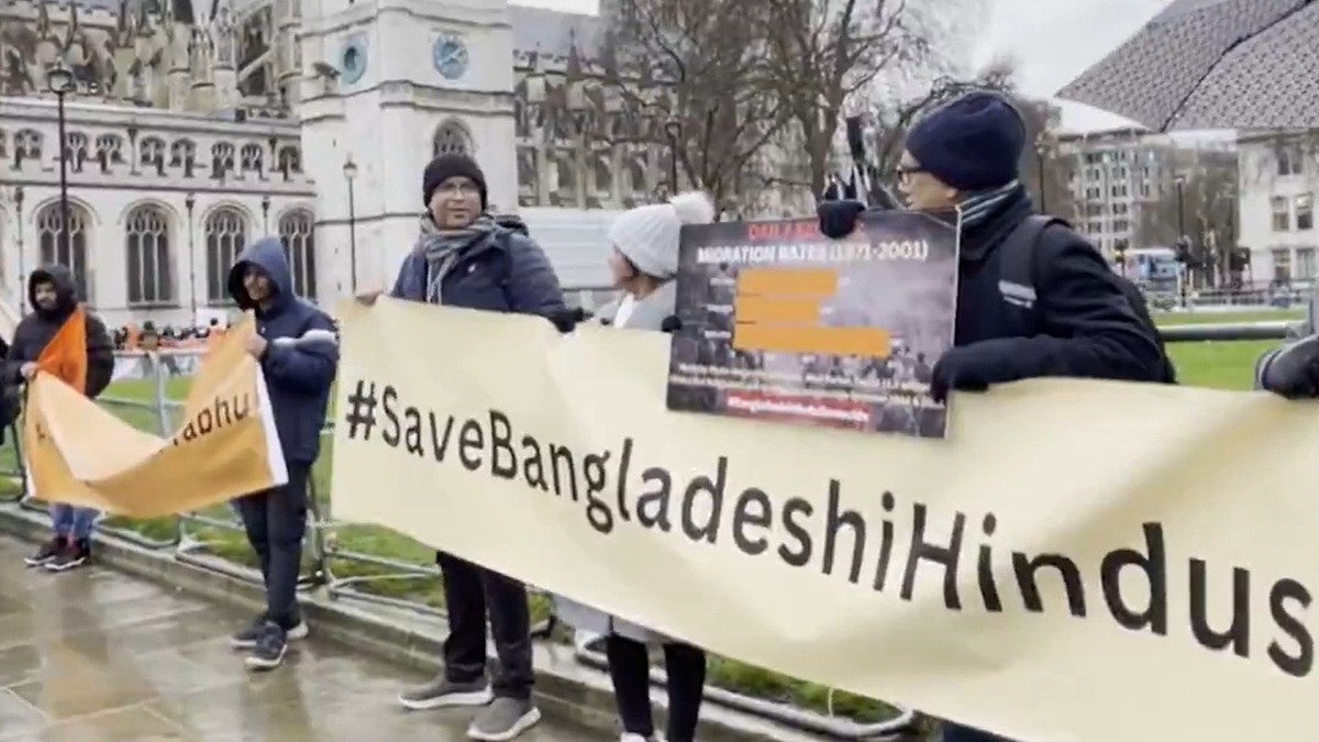 London Protest: बांग्लादेश में अल्पसंख्यकों, खासकर हिंदू समुदाय के लोगों को लगातार निशाना बनाया जा रहा है। बांग्लादेश में हिंदुओं के खिलाफ हो रहे अत्याचार के खिलाफ लंदन में आवाज उठी है। ब्रिटिश हिंदू संगठनों और बांग्लादेशी प्रवासी समूहों ने लंदन के ऐतिहासिक पार्लियामेंट स्क्वायर के पास प्रदर्शन किया। प्रदर्शन बुधवार, 21 जनवरी 2026 को शाम के समय हुआ, जिसमें ब्रिटिश सरकार से मोहम्मद यूनुस के नेतृत्व वाली अंतरिम सरकार पर दबाव डालने की मांग की गई। प्रदर्शन में शामिल लोगों ने कहा कि बांग्लादेश की सरकार निर्दोष लोगों की सुरक्षा सुनिश्चित करे और अल्पसंख्यकों के खिलाफ बढ़ती हिंसा को रोकने के ठोस कदम उठाए।