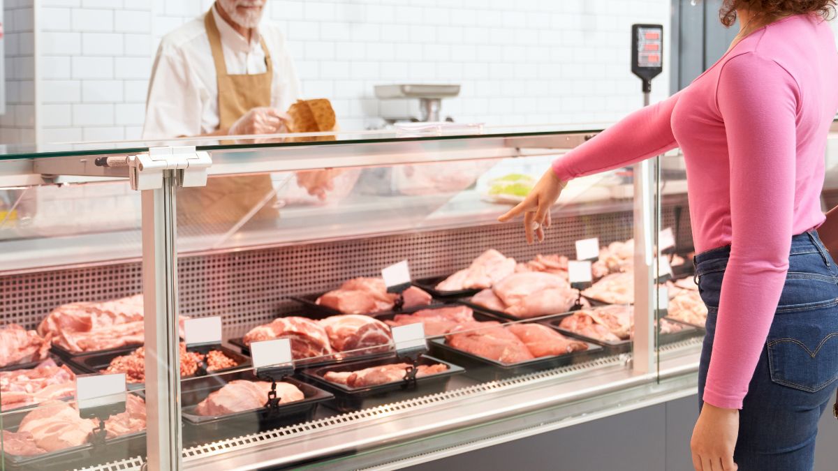 दुकान से नॉनवेज खरीदती महिला