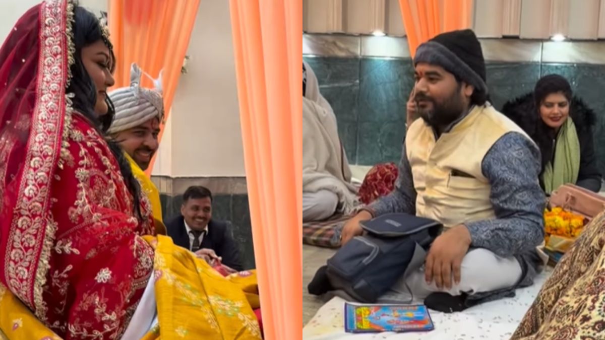 हम जिस वीडियो की बात कर रहे हैं वो शादी के दौरान फेरों के बाद का है। मंडप में बैठे पंडित जी ने इस दौरान कुछ ऐसा बोल दिया जिसकी किसी को उम्मीद नहीं थी। वो मंडप में बैठे हुए पूछते हैं कि पुरुष की इज्जत क्यों नहीं होती है घर? इसके बाद वो बोलना शुरु करते हैं, ‘देखो बहन की जगह ननद मिल जाती है, माता-पिता की जगह माता-पिता (सास-ससुर) मिल जाते हैं, भाई की जगह देवर या फिर जेठ मिल जाते हैं। अच्छा फ्री में क्या मिलता है (पति) और फ्री में मिली चीज की कभी इज्जत नहीं होती है, तो अपनी इज्जत अपने हाथ में है तो इसे बनाए रखना।’ यह सुनते ही सब लोग हंसने लगते हैं।