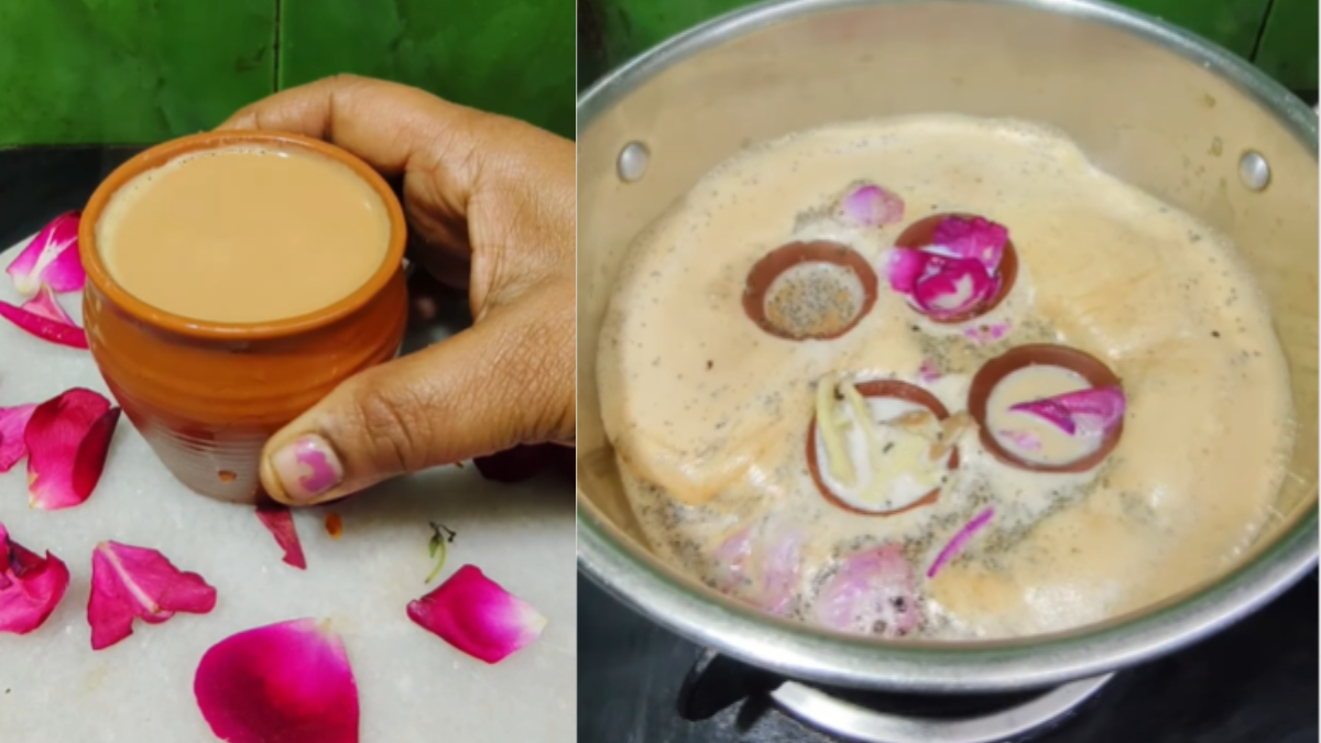 दरअसल सोशल मीडिया इंस्टाग्राम पर एक वीडियो वायरल  हो रहा है। जिसमें दीये डालकर चाय बनाने का तरीका दिखाया जा रहा है। इस चाय में गुलाब की पत्तियों की महक और अदरक का स्वाद आएगा। चाय को बनाने का तरीका भी काफी मजेदार है। जिन लोगों को स्मोकी या थोड़ा मिट्टी की खुशबू वाला फ्लेवर पसंद है उन्हें ये चाय जरूर पसंद आएगी। नीचे पूरी रेसिपी स्टेप-बाय-स्टेप दी हई है। आप इसे घर में जरूर ट्राई करें।