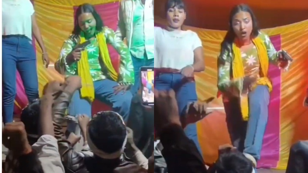 हाथ में पिस्टल लेकर थिरकी डांसर
