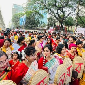 পহেলা বৈশাখ উপলক্ষে রাজধানীতে বর্ণিল শোভাযাত্রা করেছে জাতীয় নাগরিক পার্টি (এনসিপি)। মঙ্গলবার (১৪ এপ্রিল) বিকালে এনসিপির সাংস্কৃতিক সেল আয়োজিত শোভাযাত্রাটি রাজধানীর বাংলামোটরের নেভি গলির সামনের মূল সড়ক ধরে হোটেল ইন্টারকন্টিনেন্টালের সামনের রাজসিক মোড় থেকে ঘুরে বাংলামোটর মোড় হয়ে শুরুর স্থানে এসে শেষ হয়।